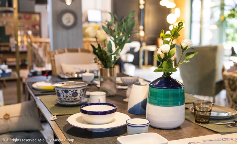 ส่วนโซนหลักอีกโซนก็จัดเป็นดิสเพลย์เครื่องครัวที่มีทั้งชุดเครื่องแก้ววินเทจเก่าเก็บ รวมถึงงานเครื่องแก้วรีดีไซน์ ช้อนส้อม ไปจนถึงถ้วยโถโอชามโทนสีวินเทจที่ดันมาฮิตมากในยุคนี้ ซึ่งจุด ๆ นี้แค่โซนเดียวก็ทำเอาเรากระเป๋าแทบฉีกไปซะแล้ว