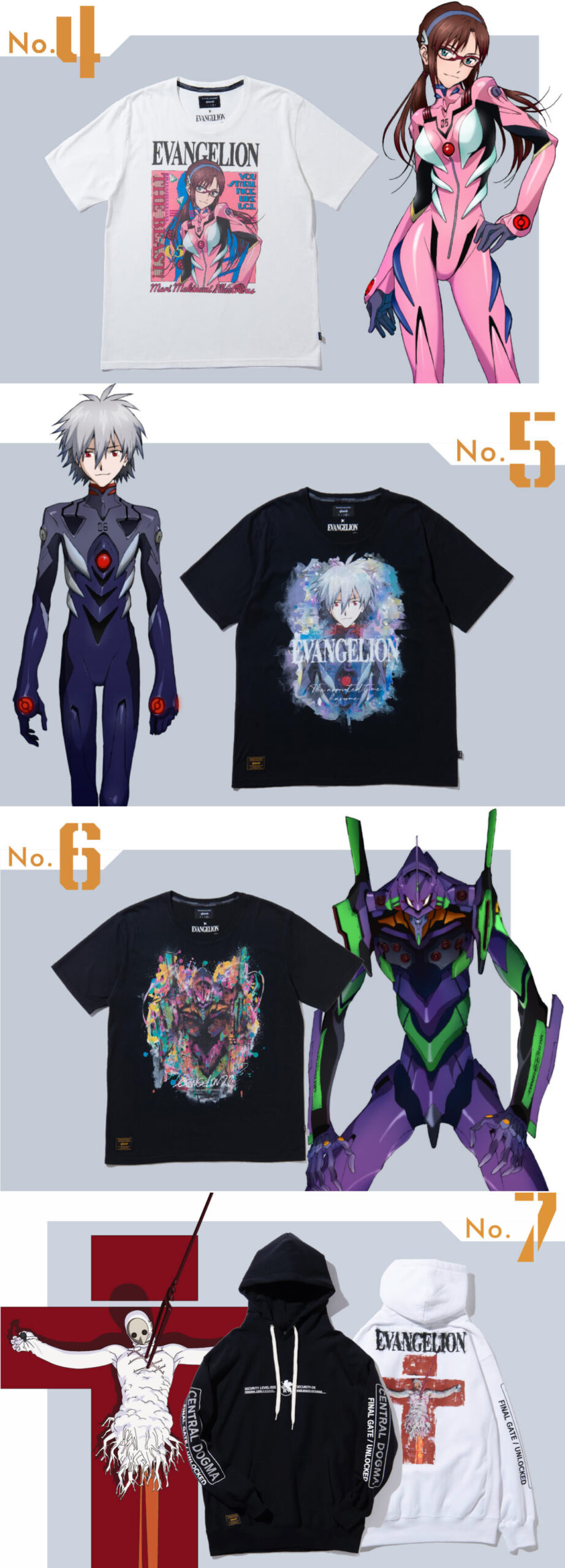 ล่าสุด OTAQUEST สื่อออนไลน์สายโอตาคุ (เขาเรียกตัวเองว่าเป็น Hyper Otaku Media น่ะนะ) ที่คอยอัปเดตความเคลื่อนไหวของป็อปคัลเจอร์และซับคัลเจอร์ในญี่ปุ่น รายงานว่าแบรนด์สตรีตแวร์จากย่านฮาราจุกุของดีไซเนอร์ คัน ฟุรุยะ อย่าง Glamb ได้เปิดตัวคอลเลกชันเสื้อยืดและฮูดดี้ Evangelion ภายใต้คอนเซปต์แบบวิวิดร็อก เน้นสีจัดจ้านตัดกับพื้นเสื้อสีขาวดำ