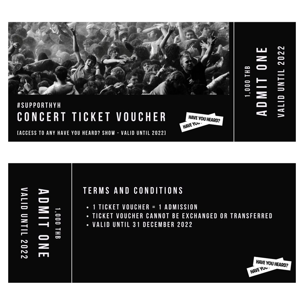 มาถึงไอเทมที่เหมือนเป็นไฮไลต์ของทั้งหมดทั้งมวล ซึ่งมันคือเวาเชอร์งานคอนเสิร์ตในราคาใบละ 1,000 บาท ที่พอซื้อแล้วจะถือสิทธิ์เข้างานคอนเสิร์ตใด ๆ ที่จัดโดยทีม HAVE YOU HEARD? ก็ได้ทั้งนั้น! ถ้าเทียบกับงานคอนเสิร์ตทั่ว ๆ ไปที่สนนราคาบัตรก็พันกว่าบาท หรือบางงานอาจสูงถึง 2-3 พันด้วยซ้ำ ใครที่รู้ตัวว่าเป็นสายคอนเสิร์ตแล้วไม่ซื้อเวาเชอร์เก็บไว้ เราจะถือว่าพลาดมากที่สุดในโลก!