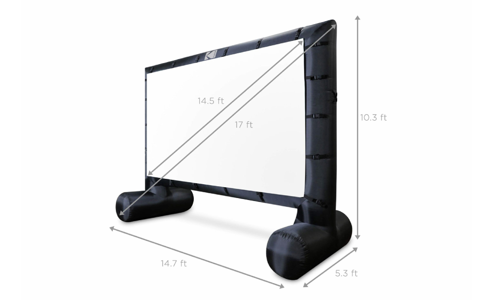 สำหรับสัดส่วนภาพของ KODAK Extra Large Inflatable Screen อยู่ที่ 16:9 และขนาดจออยู่ที่ 14.5 ฟุต ซึ่งจุด ๆ นี้ ใครกลัวจอเป็นรอยแล้วลมรั่ว เขาก็มีแพตช์ให้ใช้ปะซ่อมแซม ใครกลัวจอปลิว เขาก็มีเชือกยึดไว้ให้ใช้ผูกกับสิ่งรอบข้าง เรียกว่าในแพ็กเกจมีให้พร้อมแล้ว เราแค่ต้องมีโปรเจกเตอร์กับพื้นที่เท่านั้นแหละ