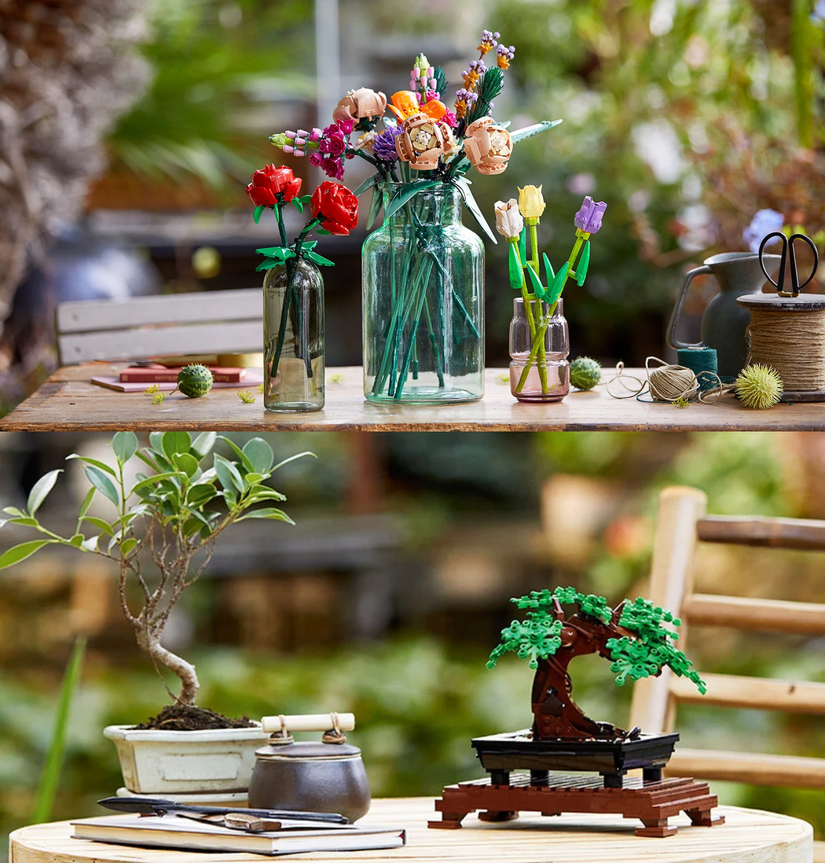 ความว้าวคือการที่เราสามารถบิดงอกิ่งก้านไม้ดอกไม้ประดับ LEGO ของเราได้ด้วย เพื่อให้สามารถเอาไปจัดลงแจกันหลากหลายรูปทรงได้จริง ๆ เวอร์ไปอีก! ส่วนเจ้าบอนไซก็ไม่น้อยหน้า มาพร้อมกระถางตั้งโชว์เสร็จสรรพ แถมยังมีให้เลือกเป็นเวอร์ชันเขียวขจีและเวอร์ชัน Cherry blossom ชมพูสะพรั่ง เห็นแบบนี้แล้วมันน่าเหมามาไว้ติดบ้านสักชุดสองชุดนักเชียว!
