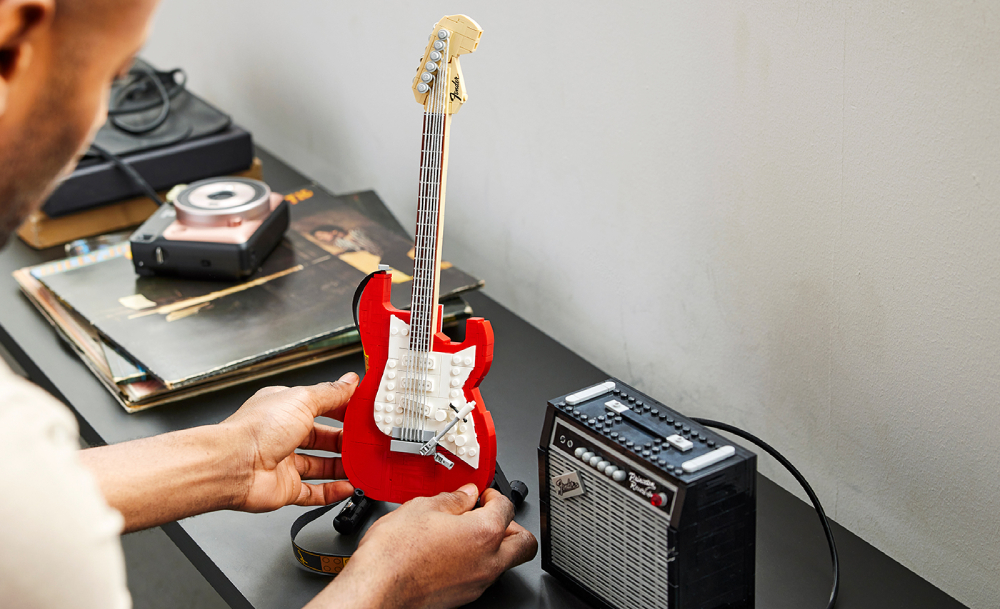 LEGO 'Fender Stratocaster' มาจากแคมเปญ LEGO Ideas Music to Our Ears ที่ โทมัส เลเตเนย์ (Tomáš Letenay) ดีไซเนอร์จากสโลวาเกีย ส่งเข้าประกวด แล้วกรรมการชื่นชอบกันมาก ๆ จนตัดสินใจผลิตออกมาขายจริงไปเลย โดยเป็นเซตตัวต่อ 1,074 ชิ้น ที่ประกอบเสร็จแล้วมีความสูง 36 ซม. กว้าง 11 ซม. และมีดีเทลแสนจะละเอียด ทั้งสาย ทั้งคอ ทั้งแอมป์ ฯลฯ เริ่ดในเริ่ดจริง ๆ อะ!
