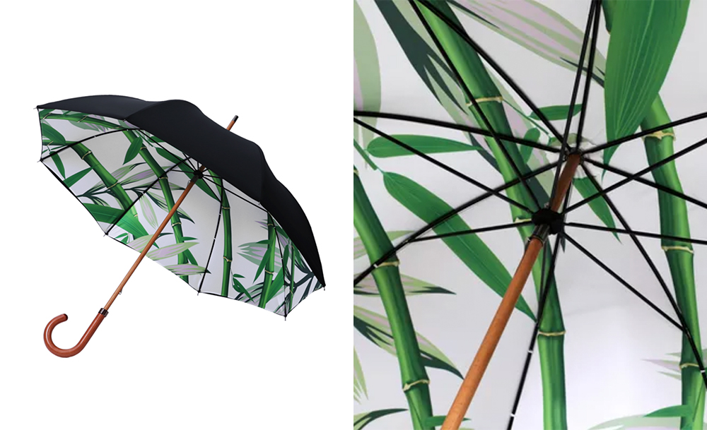 ถึงทางแบรนด์จะบอกว่ามันเป็นลายพิมพ์ปาล์มไผ่ แต่เราขอเถียงว่าลายนี้มันคือ Bamboo หรือลายไผ่เฉย ๆ ไม่มีปาล์มที่ไหนมาปน โดยเป็นการต่อยอดการออกแบบจากด้ามร่มรุ่นฮิตของ London Undercover ที่เป็นปล้องไม้ไผ่ตรงมือจับนั่นเอง ลายนี้เป็นร่ม Double Layer เช่นเคย แต่ให้อารมณ์แตกต่างกันโดยสิ้นเชิงกับร่มลายธรรมชาติเหมือน ๆ กันอย่างลายพิมพ์ชบาฮาวาย เพราะด้านในของแบบนี้ลงสีพื้นเป็นสีขาว พอมีต้นไผ่สีเขียวมาตัด เลยให้ความรู้สึกสดชื่นไปอีกแบบ