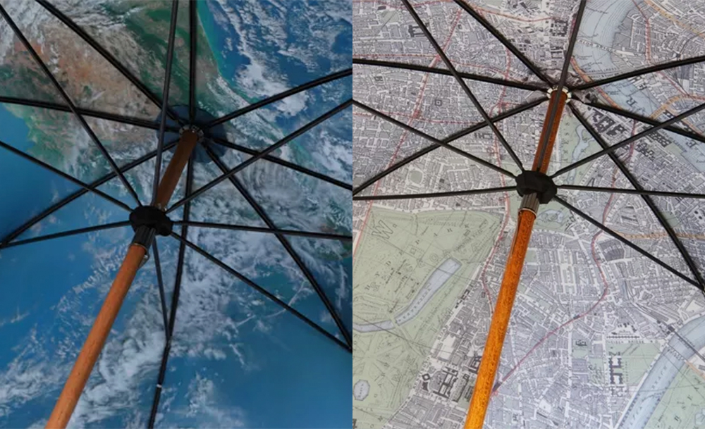 ร่ม Double Layer ลายแผนที่วินเทจกรุงลอนดอนช่วงยุค 1930s ที่ดูซิงก์กับลายพิมพ์ผืนโลกดีมาก ส่วนตัวเราชอบลายแผนที่ ลายผังเมืองอยู่แล้ว เลยรู้สึกว่าร่มคันนี้น่าถือเอามาก ๆ น่าจะปลุกความเป็นลอนดอนเนอร์ในตัวเราออกมาได้ดีตอนฝนตก ถึงตัวจริงเราจะเป็นแบงค็อกเคียนก็เถอะ