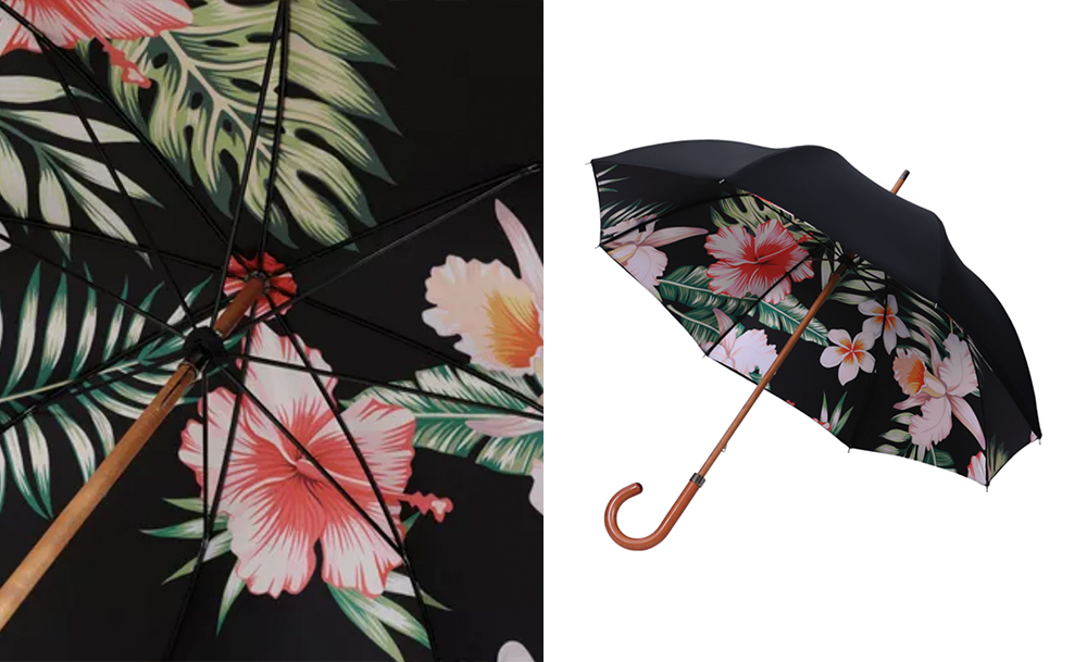 ร่ม Double Layer ซ่อนลายพิมพ์ดอกชบาฮาวายไว้ด้านใน เพิ่มความหวานให้เจ้าของร่มได้แบบ Effortless มาก ๆ ซึ่งทางแบรนด์บอกว่าลายพิมพ์สไตล์ฮาวายแบบนี้ ตัดกันดีกับถนนที่แสนจะเปียกปอนในกรุงลอนดอน ประเทศอังกฤษ ที่นอกจากอากาศจะอึมครึมอยู่แทบจะตลอดเวลาแล้ว ตึกรามบ้านช่องของเขายังเคร่งขรึมไม่อ่อนโยนซะเท่าไหร่เลยด้วย ร่มลายนี้เลยจะเป็นความมีชีวิตชีวาท่ามกลางความไม่สดใสของสภาพอากาศและชุมชนเมืองได้ดีมาก ๆ เลย