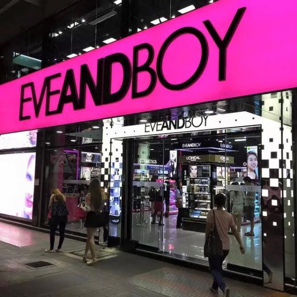 Eveandboy เลื่องชื่อลือชาในด้านการเป็นมัลติแบรนด์สโตร์ด้านบิวตี้ไอเท็มโดยเฉพาะ ตึกขนาดใหญ่ 2 ชั้นถูกอุทิศพื้นที่ทุกตารางนิ้วให้แบรนด์เครื่องสำอางและผลิตภัณฑ์ความงามละลานตาจนแทบเลือกไม่ถูก มีตั้งแต่ไฮแบรนด์จากยุโรป อาทิ Lancome, Laura Mercier, Estee Lauder, Nars และอีกมากมายดาวล้านดวง รวมไปถึงแบรนด์ดังจากในเอเชียก็ยกทัพมาแทบทุกแบรนด์ เช่น The Saem และ Sulwhasoo จากเกาหลีใต้ รวมทั้งน้ำตบ SKII ก็มีขายที่นี่เหมือนกันนะ ที่สำคัญคือที่นี่ลดราคาบ่อยมาก เข้าไปทีแขนแทบจะไม่มีพื้นที่พอให้ลองเทสเตอร์