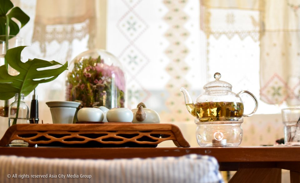 โดยพี่แป้งได้เลือกเมนูไฮไลท์เด็ดให้เข้ากับธีมวินเทจของร้านอย่างการเสิร์ฟเซ็ตชายามบ่ายสไตล์อังกฤษคู่กับ Magic Moon Cake Set (550 บาท) โดยตัว Magic Moon Cake นี้เป็นขนมเปี๊ยะสูตรพิเศษ เลือกทำไส้และสีสันให้เข้ากันจนเป็นเอกลักษณ์ 6 ชนิด อย่างเช่นตัว Black Magic Moon Cake เป็นขนมเปี๊ยะสีดำไส้ถั่วดำและงาดำ แปะด้านบนด้วยทองคำเปลว ซึ่งทางร้านแนะนำให้ทานคู่กับชาอิงลิชเบรคฟาสต์ อารมณ์เหมือนได้ย้อนกลับไปอยู่ในช่วงยุค 60-70s เบาๆ