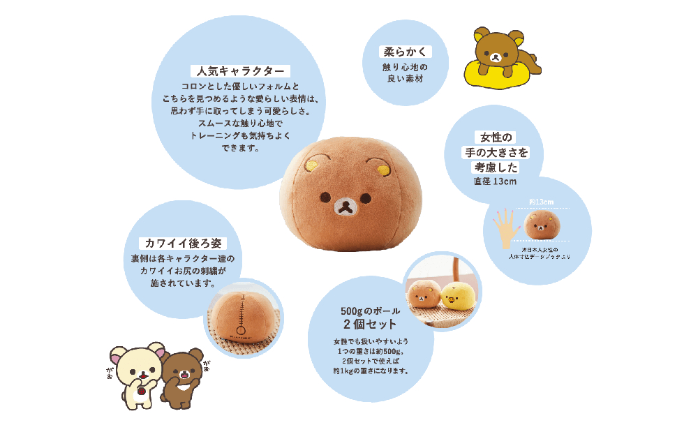 ใครว่าการออกแรง ออกกำลัง ดูแลร่างกายให้ฟิตแอนด์เฟิร์ม ต้องมาในรูปแบบความแมนความอึดเท่านั้นกันล่ะ? ล่าสุด ผู้ผลิตอุปกรณ์กีฬาชื่อดังของญี่ปุ่น Mizuno เขาลบภาพความบึกบึนของการออกกำลังด้วยการดีไซน์เจ้า Ballretch ลูกบอลถ่วงน้ำหนักที่เปิดตัวไปเมื่อกลางปี 2019 ให้เป็นคาแรกเตอร์ของ San-X อย่าง Rilakkuma, Kiiroitori, Chairoikoguma และ Korilakkuma น่าซื้อน่าใช้สุด ๆ เป็นคอลเลกชันเครื่องกีฬาที่น่ามีติดบ้านซะจริง ๆ