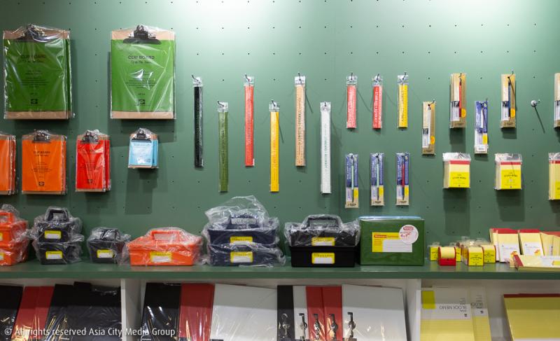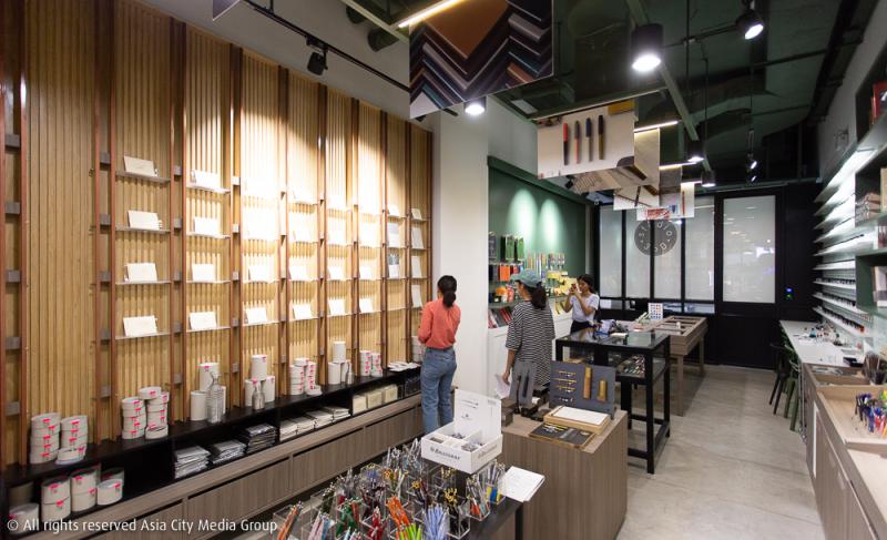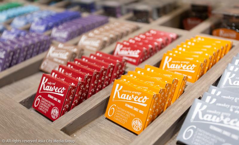โดยเครื่องเขียนที่วางอยู่รอบ ๆ ร้านก็จะมีแบรนด์จากหลากหลายประเทศกว่า 20 แบรนด์ ตั้งแต่ Kaweco แบรนด์สัญชาติเยอรมันที่มีอายุกว่า 100 ปี มีเอกลักษณ์ที่ความคลาสสิกและคุณภาพระดับดีเยี่ยม ถือเป็นแบรนด์แรกที่นำเข้ามาและมีสินค้าครบมากที่สุดในร้าน ystudio แบรนด์ไต้หวันที่เครื่องเขียนของเขาจะเน้นไปที่ความเรียบง่ายแต่แฝงไปด้วยรายละเอียด ใครเห็นครั้งแรกก็ต้องถูกอกถูกใจในความเรียบหรูมีสไตล์ในสินค้าของเขา