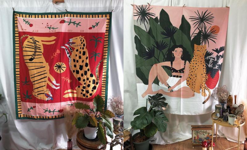 แนะนำร้านเฟอร์นิเจอร์มาเยอะแล้ว ย้ายมาทางฝั่งร้านสิ่งทอตกแต่งบ้านกันบ้างดีกว่า สำหรับร้านนี้ก็ได้ใจสาย More is More อย่างเรามาก เพราะร้านเขาเน้นไปที่ผ้าแต่งห้องสีสันสดใสพร้อมกิมมิคลวดลายเก๋ ๆ ที่เอาใจทั้งสายฮิปปิ้ สายสไตลิช และสายพาสเทลกุ๊กกิ๊ก นอกจากผ้าแต่งผนังแล้วร้านเขายังมีพวกพรมให้เลือกไปวางข้างเตียงหรือโซฟาในห้องนั่งเล่นกันด้วย ส่วนราคาก็ต้องบอกเลยว่าน่ารักไม่แพ้ของ เพราะเท่าที่เลื่อนมายังไม่เจอผืนไหนเกิน 1,000 บาทเลยนาจา