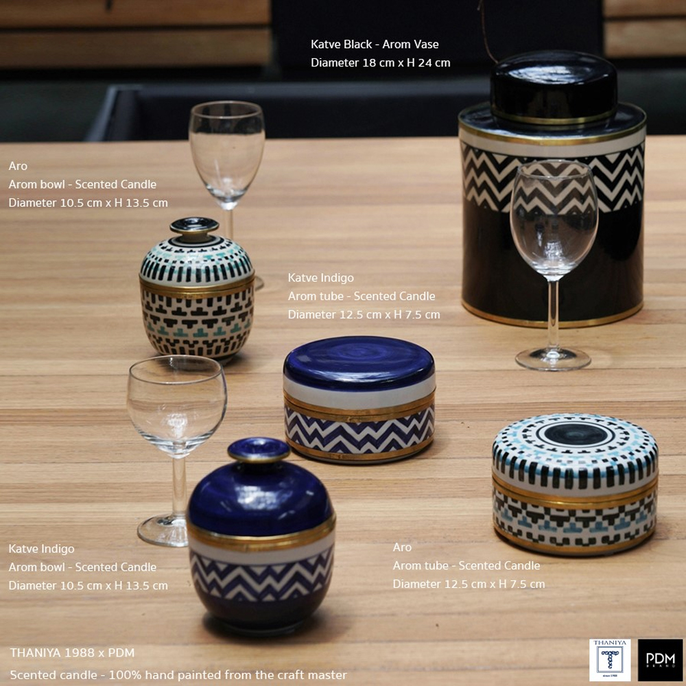 ความพิเศษของคอลเลกชัน Thaniya 1998 x PDM ไม่เพียงเป็นเรื่องของกลิ่นซึ่งเกิดจากความเชี่ยวชาญในการปรุงกลิ่นแบบไทย ๆ ของ Thaniya 1998 เท่านั้น แต่เทียนหอมนี้ยังมาในบรรจุภัณฑ์ที่เป็นถ้วยเซรามิกเพนต์มือโดยช่างฝีมือประสบการณ์สูงของ Thaniya 1998 ออกมาเป็นลวดลายที่สะท้อนความไทยโมเดิร์น ซึ่งเป็นดีเอ็นเอของ PDM และเมื่อใช้เทียนหมดแล้ว ก็สามารถแปลงเป็นของตกแต่งบ้านหรือที่ใส่ของกระจุกกระจิกได้ด้วย