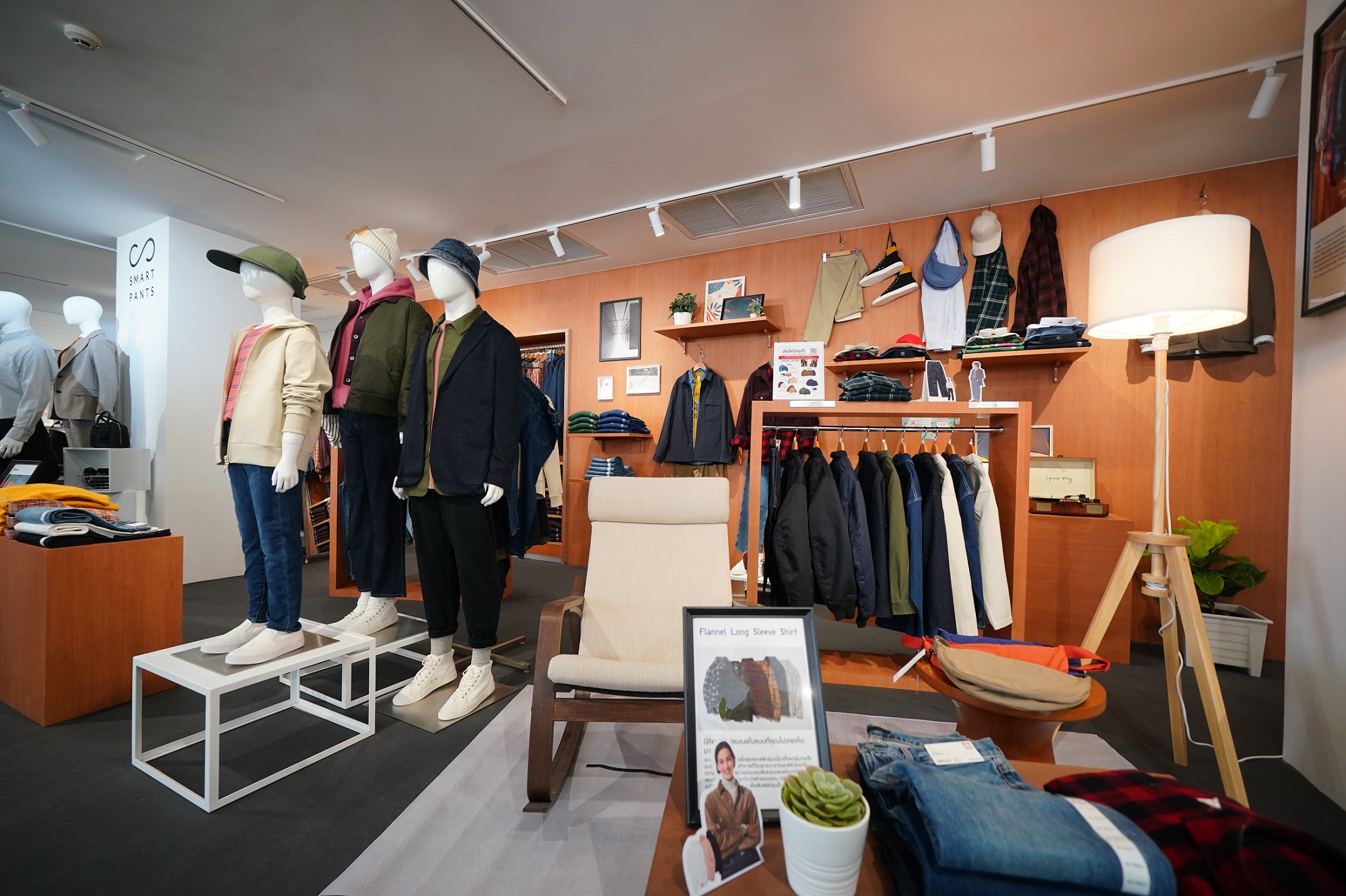 ไล่มาตั้งแต่ชั้น 1 ที่เมื่อเดินเข้าไปจะเจอกับบรรดาเสื้อผ้า LifeWear ที่ถูกหยิบมาโชว์ภายใต้ธีมประจำฤดูใบไม้ร่วงและฤดูหนาว 2022 เราเลยจะเห็นเสื้อผ้าส่วนใหญ่เป็นแจ็กเก็ต เสื้อกันหนาว รวมถึงเสื้อฮีตเทครุ่นใหม่ของแบรนด์แขวนโชว์อยู่ พร้อมดิสเพลย์ที่ชวนให้นึกถึงกระท่อมกลางป่าในยุโรปเอาซะมาก ๆ ส่วนอีกหนึ่งไฮไลต์ของชั้นนี้ คือโซนแผงดอกไม้ที่คอลแลบฯ ร่วมกับ Bangkok Flower จนเกิดเป็นโซนใหม่อย่าง Uniqlo Flower ขึ้น ให้สาว ๆ หนุ่ม ๆ ได้เลือกซื้อดอกไม้แสนสวยในราคาไม่แพง เพื่อเติมเต็มไลฟ์สไตล์ที่ไม่ได้ตีกรอบแค่เรื่องเสื้อผ้าของ Uniqlo