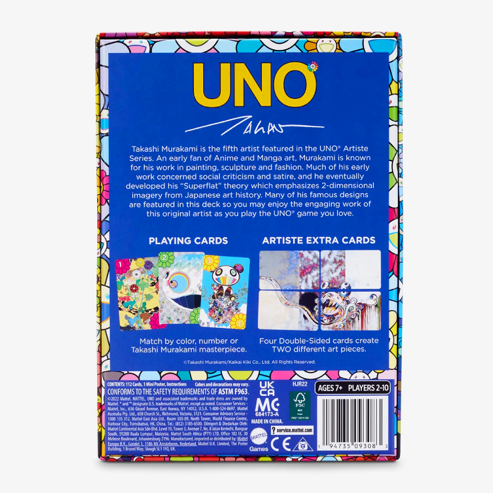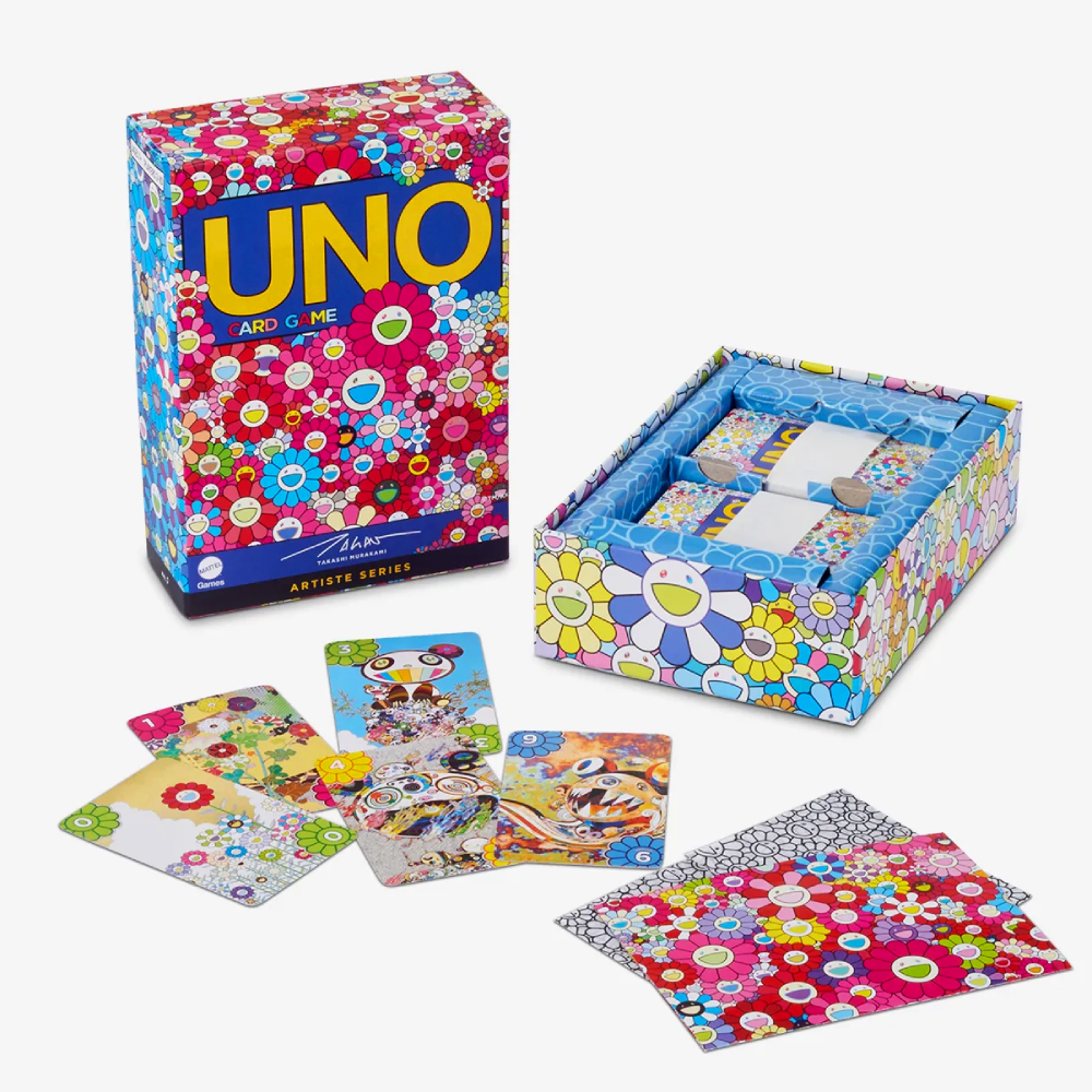 โปรเจกต์ Mattel x Takashi Murakami หรือจะเรียกว่า Takashi Murakami x UNO นี้ ประกอบด้วย การ์ดในสำรับ 112 ใบ มาพร้อมมินิโปสเตอร์ดอกมุราคามิน่าสะสม โดยในสำรับที่ว่าจะมีการ์ดพิเศษที่ประกอบกันได้เป็นภาพมาสเตอร์พีซของศิลปินไปอีก เก๋มาก ๆ
