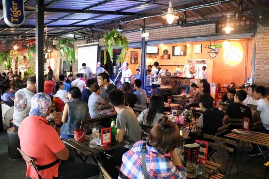 มีบาร์เล็กๆ เรียงรายกันอยู่ด้านหน้าตั้งแต่บริเวณถนนทางเข้าตลาดนัด แต่ละร้านไม่ต่างกันขนาดนั้น แต่มีเล่นดนตรีสดตอนดึกๆ โอเคเลยนะถ้าไม่รำคาญเสียงเพลงตัฟเวอร์ ลานด้านข้างตลาดนัดก็มีการแสดงอยู่เรื่อยๆ เหมือนกัน ส่วนของกินจุกจิกก็มีเยอะแยะทั่วตลาดนัดเลย เหมาะสำหรับคนที่อยากช้อปไปกินไป