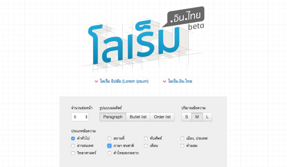 ความหนักใจของพวกเราชาวดีไซเนอร์ไทยจะหมดไป พอกันทีกับการเอาบทความมั่วๆ มาแปะม็อคอัพ เพราะ โลเร็มอินไทย เป็น placeholder text ที่เอาไว้สร้างข้อความยาวๆ ปลอมๆ สำหรับเอาไปวางในเลย์เอาท์ก่อนที่ข้อความจริงจะมานั่นเอง