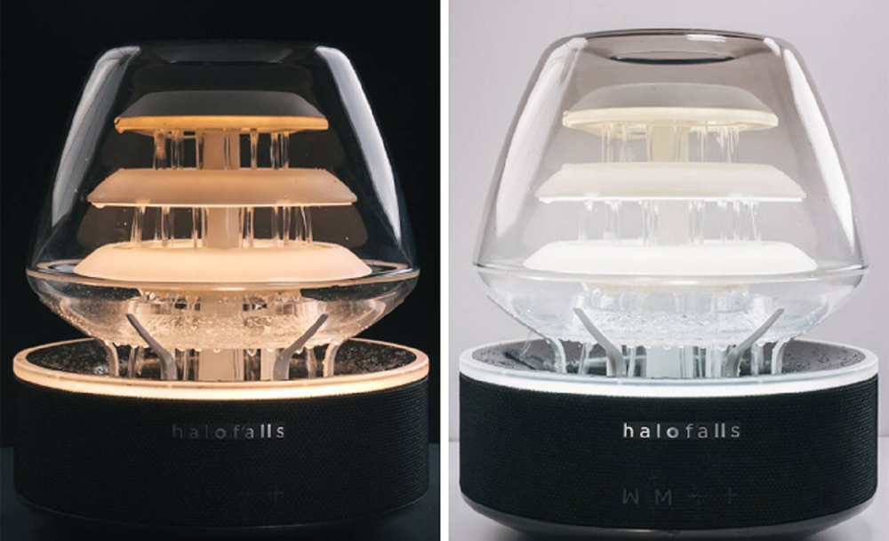 ไฮไลต์ของเจ้า HaloFalls นี้คือชั้นน้ำตกขนาดเล็ก 4 ชั้น ที่ถูกติดตั้งไว้ในตัวเครื่อง ทำหน้าที่เป็นโคมไฟ LED ด้วย โดยเราสามารถเติมน้ำเข้าไปเพื่อสร้างบรรยากาศน้ำตกจำลองย่อม ๆ และสามารถฟังเสียงน้ำไหลเป็นแอมเบียนซ์เคล้าคลอไปกับเพลงโปรดพร้อม ๆ กัน ที่เก๋สุดก็คือเราสามารถปรับเลือกได้ว่าอยากได้แสงโทนอุ่นหรือเย็น หรือจะมิกซ์กันไปเลยก็ได้ แถมยังสามารถปรับระดับความสว่างของแสง เพื่อสร้างมู้ดที่อยากได้ในช่วงนั้น ๆ ได้ตอบโจทย์ที่สุดด้วย!