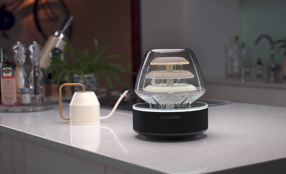 HaloFalls คือลำโพงไร้สายที่ถูกออกแบบมาเพื่อสร้าง Audiovisual หรือเสียงที่มาพร้อมภาพ ทำให้เจ้าลำโพงตัวนี้ไม่ได้เล่นเพลงธรรมดา แต่เป็นเหมือน Ambience Maker หรือเครื่องสร้างบรรยากาศในห้อง ที่พร้อมกล่อมเกลาประสาทการรับรู้ทั้งด้านภาพ เสียง และความรู้สึก