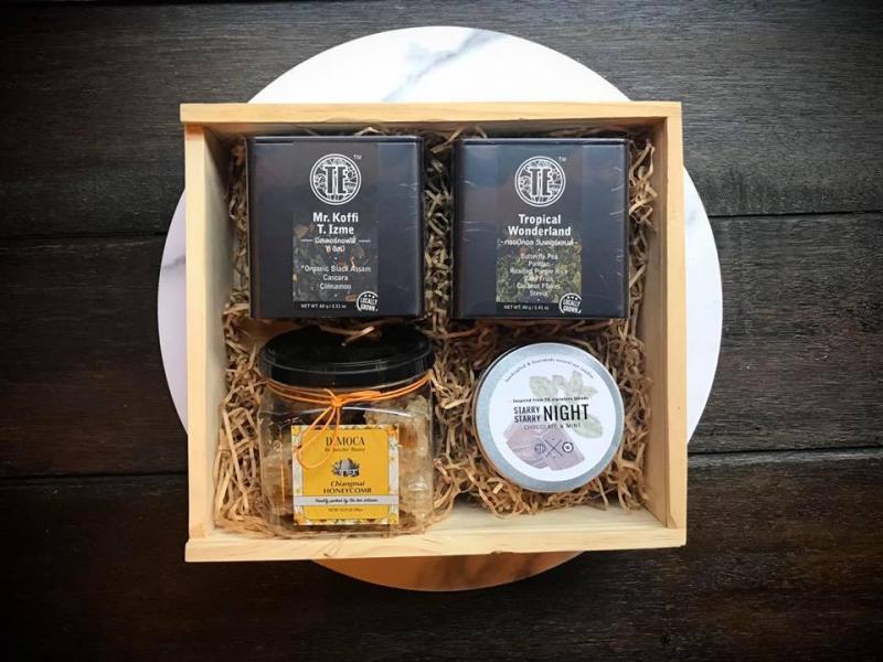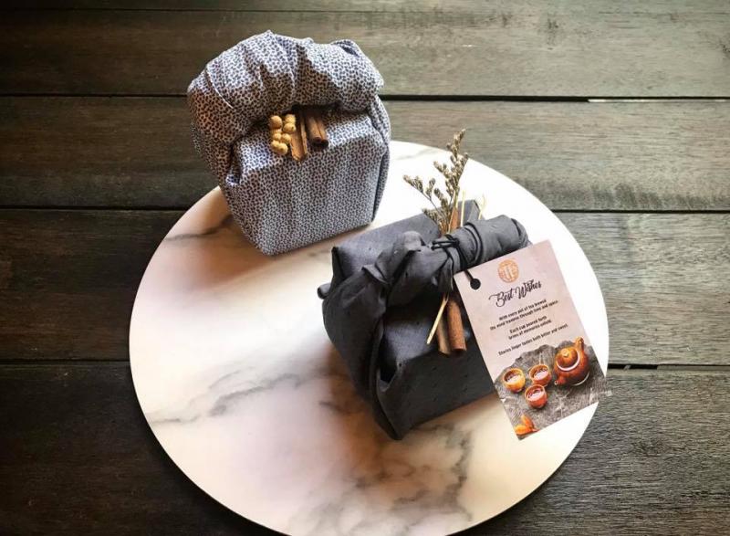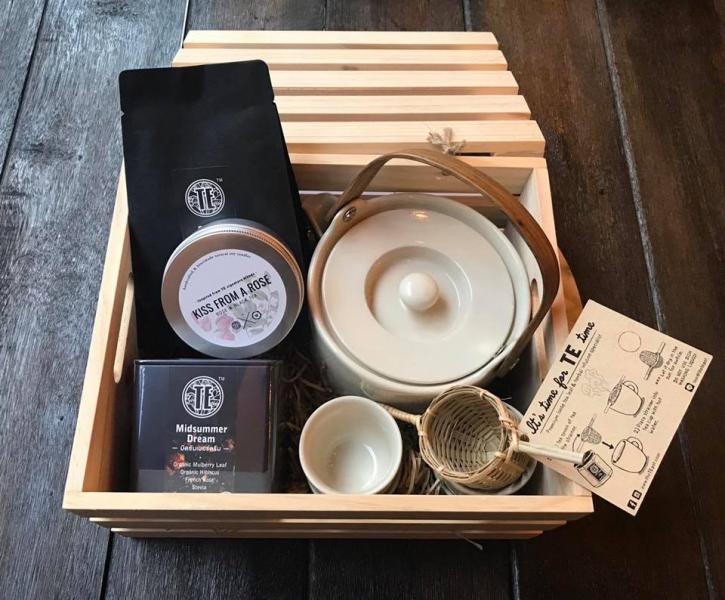 ปีนี้เซตของขวัญคอลเลกชันใหม่ของ TE เขาจับมือกับ Moreloop ที่เชื่อในเศรษฐกิจหมุนเวียน และเชี่ยวชาญในการนำผ้าเหลือใช้จากอุตสาหกรรมต่าง ๆ มาใช้ใหม่ เกิดเป็นผ้าห่องของขวัญที่เข้ากับผลิตภัณฑ์ของ TE สุด ๆ โดยเจ้าของโปรเจกต์อย่าง TE เองก็ไม่ได้น้อยหน้า เปลี่ยนกระปุกชาให้ทึบแสงยิ่งขึ้น เพื่อเก็บใบชาได้นาน และนำกลับมาใช้ใหม่ได้ง่ายขึ้นด้วย เขาบอกเลยว่าลูกค้าสามารถนำกระปุกกลับมาเติมชาใหม่ได้เรื่อย ๆ ต่อยอดความรักษ์โลกกันให้สุดทาง
