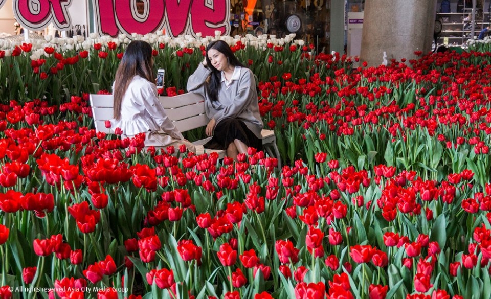 ทั้งทิวลิปสีแดงพันธุ์ Lle de France ทิวลิปสีขาวพันธุ์ Antarctica และทิวลิปสีชมพูพันธุ์ Margarita ที่สวยสุด ๆ จะถ่ายรูปดอกไม้อย่างเดียว หรือถ่ายคุณแฟนกับดอกไม้ให้ได้ฟีลละมุน ๆ ก็น่ารักดีนะ