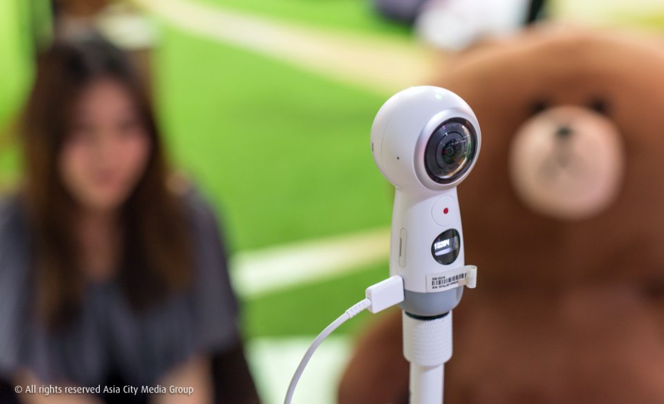 โดยภายในงานเราสามารถลองถ่ายภาพจาก Gear 360 ได้ ซึ่งกิมมิคเล็กๆ น่ารักที่มาด้วยคือฉากที่จัดเหมือนกำลังเข้าค่ายอยู่กับคาแรกเตอร์จากไลน์ เสร็จแล้วสามารถส่งภาพเข้าอีเมลเป็นที่ระลึกได้ด้วยนะ