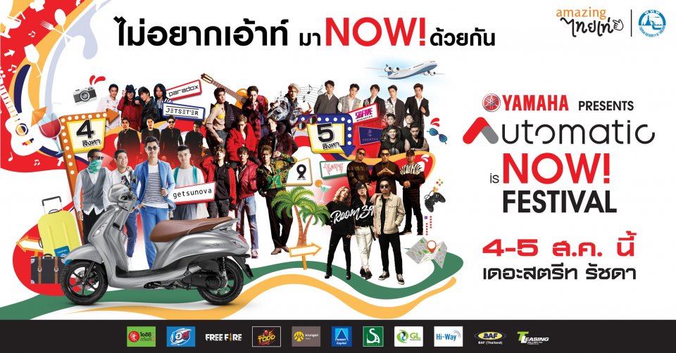 ก่อนจะเริ่มไปทำกิจกรรมอย่างอื่น เราขอแนะนำให้พุ่งมางาน Yamaha presents "Automatic is NOW!" ที่เดอะสตรีท รัชดาก่อนเลยเพราะว่าอันนี้เด็ดสุด ! เนื่องจากทางยามาฮ่า กับการท่องเที่ยวแห่งประเทศไทย เค้าตั้งใจให้เป็นเทศกาลที่รวมเอาทุกไลฟ์สไตล์ของคนรุ่นใหม่มาไว้ด้วยกัน จนกลายเป็นเทศกาลที่จัดทั้งหมด 5 ครั้งทั่วประเทศ ซึ่งครั้งแรกก็คือวันที่ 4 และ 5 สิงหาคมนี้ตั้งแต่เที่ยงวันจนถึงเที่ยงคืน โดยรวบรวมทั้งร้านอาหารดังจากทั่วประเทศ ไปจนถึงคอนเสิร์ตจากศิลปินอย่าง Getsunova, Jetset'er, Paradox, Room39, Cocktail ไปจนถึงสายฮิปฮอปอย่าง Southside และอิเลคโทรนิกส์อย่าง Djkurrypup ที่จะมาทำให้เราเต้นกันจนเอวหลุดไปเลย