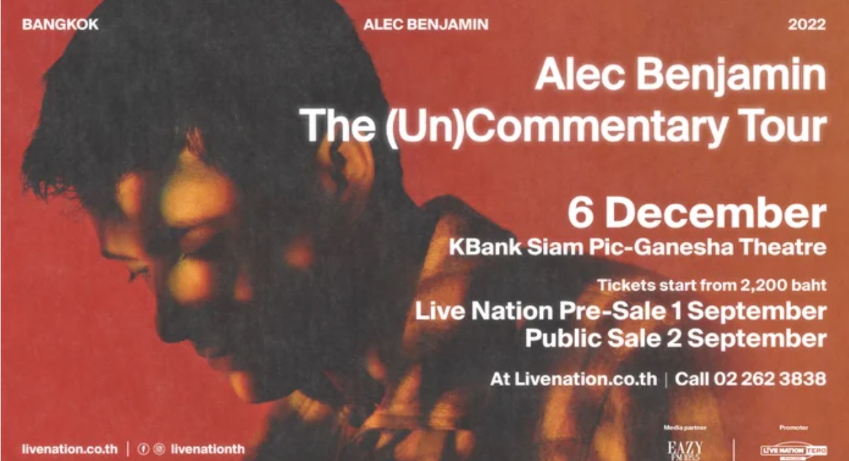 ช่วงนี้เหมือนเหล่าผู้จัดเขาอัดอั้นจนต้องระเบิดตารางโชว์ออกมาแข่งกันแบบรัว ๆ จนทำเอาวงการนักกดบัตรอย่างเรามือสั่นไม่ไหว ล่าสุด กับการประกาศโชว์อย่างต่อเนื่องของทีมโปรโมเตอร์อย่าง Live Nation Tero ที่เพิ่งประกาศโชว์ Pink Sweat$ Presents Pink Moon ไปหมาด ๆ เมื่ออาทิตย์ก่อน มาสัปดาห์นี้ก็สามารถปิดดีลพาหนุ่ม Alec Benjamin เจ้าพ่อเพลงเศร้าแห่งวงการดนตรีอินดี้ฝั่งอเมริกา มาเยือนได้สำเร็จ โดยได้ฤกษ์แสดงช่วงปลายปีในวันที่ 6 ธ.ค. นี้ ณ โรงละคร เคแบงก์ สยามพิฆเนศ ภายใต้ชื่อโชว์ว่า Alec Benjamin: The (Un)Commentary Tour ซึ่งเป็นส่วนหนึ่งของอัลบัมใหม่อย่าง (Un)Commentary ที่เพิ่งปล่อยไปเมื่อเดือน เม.ย. ที่ผ่านมา