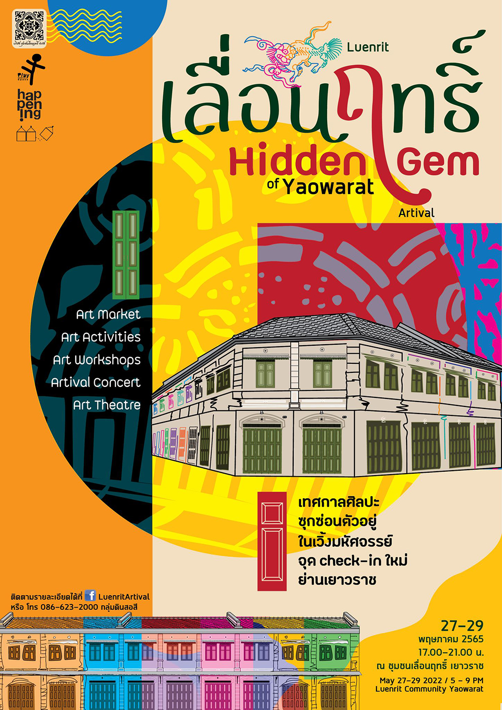 ในเดือนนี้ ชุมชนเลื่อนฤทธิ์จะชวนเราไปสำรวจเรื่องราวของย่านเก่าแห่งนี้ผ่านมุมมองของศิลปะ ด้วยการจัดเทศกาลศิลปะในย่านเมืองเก่า กับงานที่มีชื่อว่า เลื่อนฤทธิ์ Artival: Hidden Gem of Yaowarat