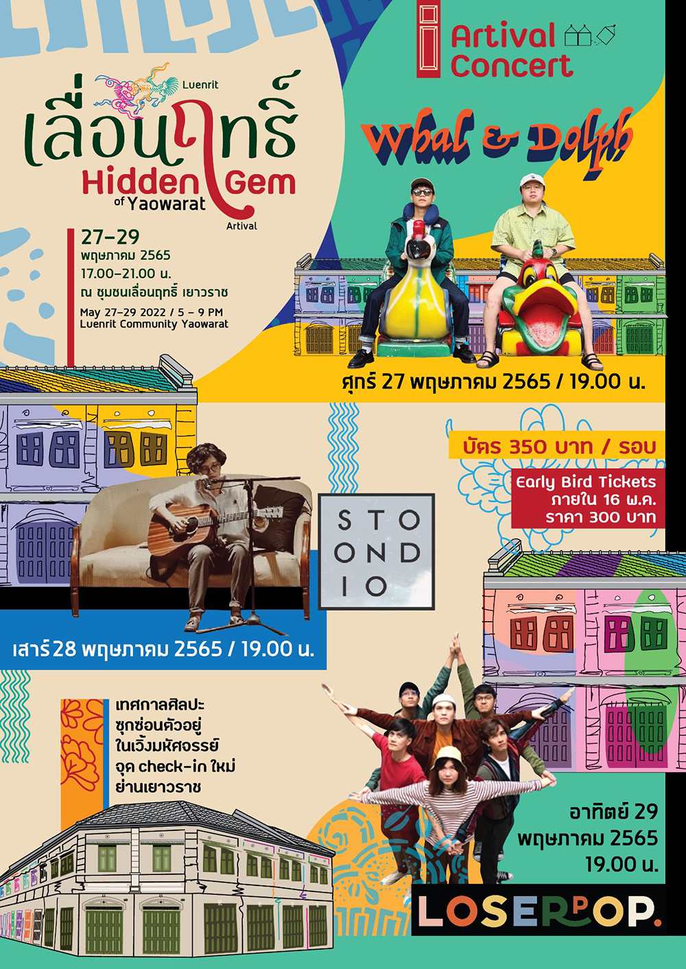Artival: Hidden Gem of Yaowarat จะเกิดขึ้นในวันที่ 27 - 29 พ.ค. 17:00 - 21:00 น. มีค่าเข้างานคนละ 100 บาท (เด็กต่ำกว่า 10 ขวบ 50 บาท) แต่ถ้าเราซื้อบัตรเวิร์กชอป บัตรคอนเสิร์ต หรือบัตรชมละคร ก็ไม่ต้องเสียค่าเข้าจ้า ดูรายละเอียดกิจกรรมและตารางงานต่าง ๆ ได้ที่ fb.com/LuenritArtival ส่วนทางนี้ขอไปรื้อกล้องฟิล์มในกรุมาออกงานก่อนนะ!