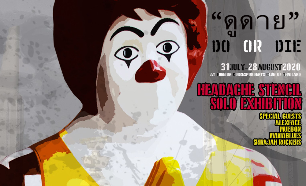 นิทรรศการจัดแสดงผลงานล่าสุดของศิลปินการเมือง Headache Stencil ที่มักนำเสนอผลงานในรูปแบบของกราฟฟิตีและสตรีตอาร์ตเพื่อวิพากษ์วิจารณ์สังคม รอบนี้มากับการเล่นคำคอนเซปต์เก๋ ดู-ดาย do-die ท่ามกลางความเพิกเฉยและประเด็นความเป็นความตายในสังคม บอกเลยว่าถ้าเขาจัดให้ดูเต็ม ๆ แบบนี้ ต้องรีบไปดู ก่อนใครจะมา 'รบกวน' การจัดแสดงงาน