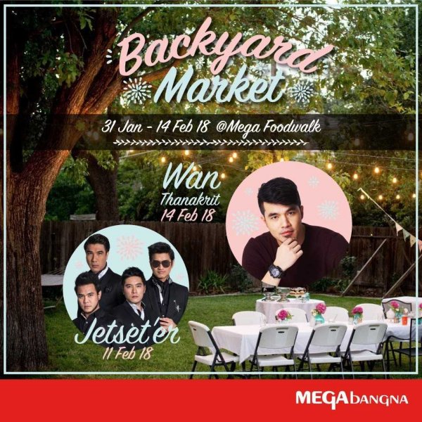 หลังจากที่เราพาไปเดินเล่นชิล ๆ ใน Mega FoodWalk โซนใหม่ใหญ่โตมโหฬารของ ศูนย์การค้าเมกาบางนา ที่ถูกเนรมิตรขึ้นมาเพื่อสายกินโดยเฉพาะ วันนี้เราจะพาท่องกลับไปสู่โซนนี้กันอีกที แต่ความดีงามที่เพิ่มขึ้นมา (นอกจากร้านอาหารนับล้าน) คือ Backyard Market ตลาดนัดกลางแจ้งที่มาพร้อมกับบรรยากาศสุดชิล บรรดาร้านรวงของใช้ งานดีไซเนอร์ เสื้อผ้าแฟชัน อาหาร-เครื่องดื่ม และดนตรีสดเคล้าคลอให้เราเดินสำรวจตลาดหลังบ้านนี้อย่างมีความสุข