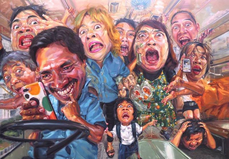งานนิทรรศการนำเสนอผลงานจิตรกรรมที่งดงามด้วยทักษะฝีมืออันเยี่ยมยอดด้วยเรื่องราววิถีชีวิตของผู้คนในยุคสมัยสื่อสังคมออนไลน์ การแสดงออกซึ่งตัวตนของผู้คน กลายเป็นงานศิลปะที่ล้อเลียนผู้คน ด้วยเส้นสีฝีแปรงอันชวนขบขันสนุกสนาน ไปเสพศิลป์กันเพลิน ๆ และพลางขบคิดถึงความเป็นจริงในสังคมปัจจุบันกัน