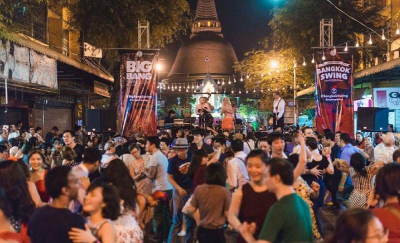 เตรียมชุดวินเทจ ผูกหูกระต่าย ทัดดอกไม้บนผม ใส่รองเท้าผ้าใบ ให้พร้อมแล้วไปงานเต้นสวิงที่ปิดถนนรถไฟหน้าองค์พระปฐมเจดีย์เปลี่ยนถนนให้เป็นงานเต้นรำย้อนยุคหนึ่งคืน อีกทั้งยังได้ชมการแสดงจากวงดนตรีสวิงชื่อดังระดับโลกอย่าง The Shirt Tail Stompers จากประเทศอังกฤษ และ Meschiya Lake นักร้องสาวจากสหรัฐอเมริกา เต้นรำกับเพื่อนใหม่ และนักเต้นสวิงมืออาชีพระดับโลกอีกกว่า 200 คน บอกเลยว่า สุด ๆ ไปเลย
