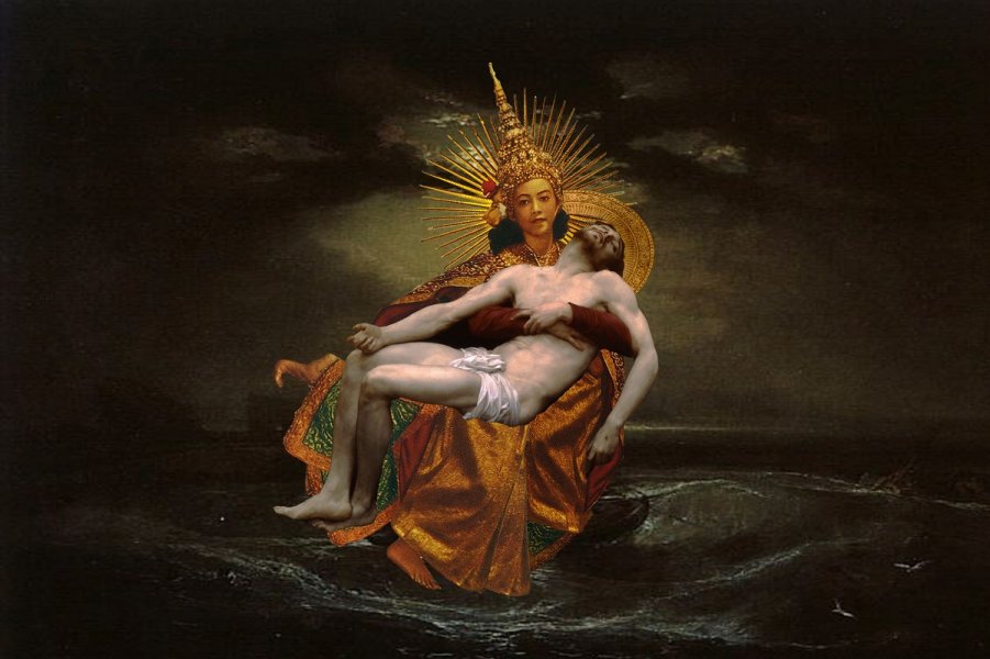 เรารู้จัก นักรบ มูลมานัส ในฐานะศิลปินคอลลาจสองมิติ (อ่านบทสัมภาษณ์ได้ที่นี่) แต่ในนิทรรศการ Coronets นี้จะเป็นผลงานที่แตกต่างออกไปในรูปแบบของ installation ที่เล่นกับ "ชฎา" วัตถุที่คนไทยให้ความเคารพและหวงแหน ซึ่งตัวศิลปินได้ตีความให้แตกต่างออกไป