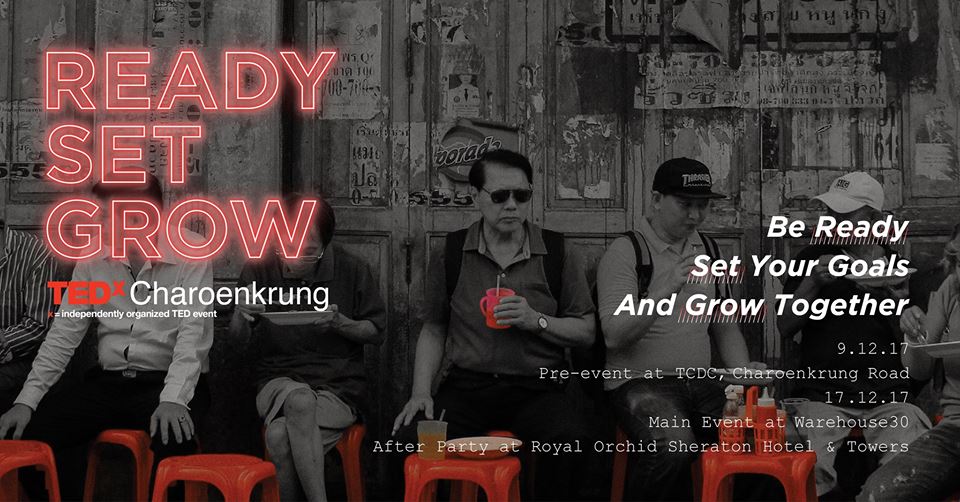 จัดกันในเดือนนี้แล้ว สำหรับ TEDxCharoenkrung งานทอล์กครั้งใหม่ที่จัดขึ้นบนถนนสายแรกของประเทศไทยอย่าง เจริญกรุง กับธีม “Ready, Set, Grow!” เรียนรู้ เปลี่ยนแปลง และเติบโต ที่เหล่าสปีกเกอร์จะมากระตุ้นความคิด เพื่อเริ่มต้นลงมือสร้างสรรค์ชุมชนและเมืองของเราให้ดีขึ้น