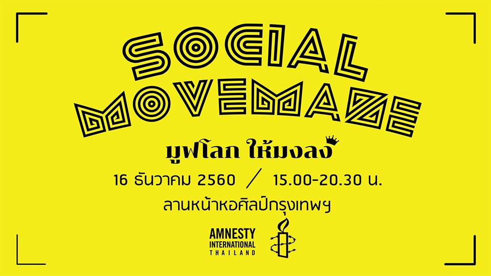ไปร่วมกันขับเคลื่อนสังคมด้วยพลังของคนรุ่นใหม่ที่ใส่ใ จปัญหาสังคม และพร้อมจะยื่นมือช่วยเหลือ เพื่อนมนุษย์ที่ติดอยู่ในวง จรของความอยุติธรรมทั่วโลกไ ปด้วยกัน ภายในงานยังมีกิจกรรมสนุก ๆ ให้ทำเยอะมาก อาทิ เขาวงกตยักษ์ กิจกรรม Write for Rights 2017 ขบวนพาเหรด และคุณพอลลีน งามพริ้ง (Pauline Ngarmpring) ที่จะมาสร้างแรงบันดาลใจให้ คนรุ่นใหม่ "กล้า" ที่จะเป็นตัวของตัวเอง