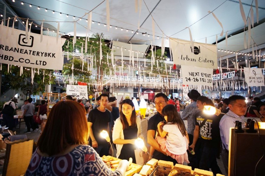 สำหรับใครที่ยังไม่เคยแวะไป Urban Eatery มาก่อน ลองนึกภาพลานกว้างที่เต็มไปด้วยร้านรวงมากมายแต่ไม่แออัด มีทั้งสินค้างานคราฟต์ เวิร์กช็อป บูธของกินและเครื่องดื่ม ตลอดจนดนตรีสดในช่วงแดดร่มลมตก คราวนี้เขาชวนไปสแกนของกินอร่อย ๆ เช่น Mirai Foods, Yum Platoo Sab, Sausage@Home ฯลฯ