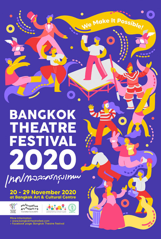 หนึ่งในเทศกาลสำคัญที่เราลุ้นแบบแทบหืดขึ้นคอว่าจะได้เกิดขึ้นในปีนี้หรือไม่ ก็คือ Bangkok Theatre Festival 2020 หรือ เทศกาลละครกรุงเทพ 2563 (BTF 2020) ที่ทำหน้าที่เป็นน้ำชุบชโลมใจให้เหล่า Theatre Geek หรือผู้มีใจหลงใหลในแสงสีของเวทีและการแสดง ซึ่งพอเขาประกาศว่า ปีนี้เทศกาลศิลปะการแสดงสดจะกลับมาจัดเป็นครั้งที่ 17 ภายใต้ธีม "We Make It Possible" โดยมาพร้อมมาตรการใหม่สไตล์ New Normal ให้ผู้ชมได้มั่นใจ สามารถตีตั๋วและเคลียร์ตารางทุกอย่างเพื่อไปจับจองที่นั่งหน้าเวที เพื่อเตรียมรับชมการแสดงกว่า 40 เรื่อง ได้แบบอุ่นใจ ปลอดภัยแน่นอน!