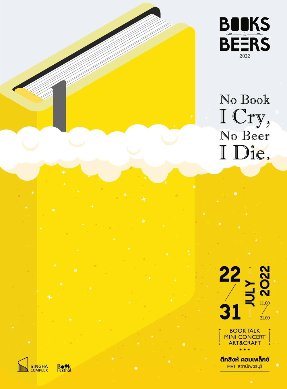 Books & Beers 2022 จะจัดขึ้นระหว่างวันที่ 22 - 31 ก.ค. นี้ เวลา 11:00 - 21:00 น. ที่ตึกสิงห์ คอมเพล็กซ์ MRT สถานีเพชรบุรี นักอ่านและนักดื่มทั้งหลายเตรียมตัวไปเมามายในตัวอักษรกันได้เลยจ้า ติดตามรายละเอียดเพิ่มเติมที่ fb.com/BookFestivalTH