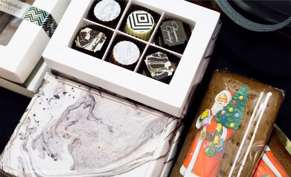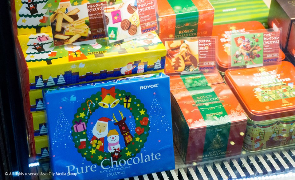 หนึ่งในของขวัญที่ทุกคนจะคิดถึงเป็นอันดับแรกๆ เลยก็คงจะหนีไม่พ้นของกิน (เราก็เช่นกัน!) ยิ่งช่วงเทศกาลแบบนี้แล้ว ทั้งตัวขนมและหีบห่อก็มีความพิเศษ น่าซื้อ น่าสะสมมากขึ้นไปอีก อย่างงานนี้ก็มีทั้งช็อกโกแลตจาก Royce (เริ่มต้น 495 บาท) และ Zing Bakery ของ Centara Grand (เริ่มต้น 55 บาท) รวมถึงเค้กหน้าตาน่ารักจาก Minibar Cafe และทาร์ตหน้าตาน่ากินของ MX Cakes & Bakery ไม่ว่าจะหิ้วกลับไปฝากใครก็ถูกใจไปเสียทุกรายเลยแหละ