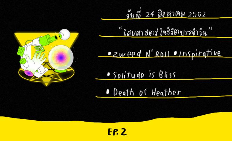 ต่อเนื่องกันไปจากคอนเสิร์ตซีรีส์ของ Fungjai จากสัปดาห์ที่แล้วเป็น EP.1 มาสู่สัปดาห์นี้ก็เป็น EP.2 ในหัวข้อบทเรียน 'Black Magic 101' (ไสยศาสตร์ในชีวิตประจำวัน) ว่าด้วยไสยศาสตร์ที่เราต่างพบเจอกับตัวเองหรือผ่านเรื่องเล่าของคนอื่น ผ่านบทเพลงและท่วงทำนองของวงที่เหล่านักฟังเพลงสายดิ่ง (รวมถึงสายลอย) รู้จักกันอย่างดี ได้แก่ Zweed N’ Roll, Inspirative, Solitude is Bliss และ Death of Heather