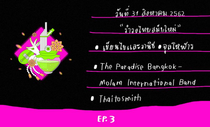 บทเรียนครั้งสุดท้ายในคอร์สหลักสูตรพิเศษของ Fungjai Lab Series ว่าด้วยหัวข้อวิชา 'Modern Thai Dance 101' (รำวงไทยสมัยใหม่) ป็นวิชาที่ว่าด้วยเพลงไทยสมัยใหม่ที่มีกลิ่นอายของความดั้งเดิมไว้อยู่และแฝงไว้ด้วยวัฒนธรรมพร้อมกับกลิ่นอายของดนตรีพื้นบ้านต่าง ๆ เช่น Taitosmith ที่เป็นวงดนตรีเพื่อชีวิตรุ่นใหม่ มีเนื้อเพลงที่สะท้อนถึงสังคมและตัวพาร์ทดนตรีก็มีการผสมผสานหลากหลายแนวดนตรีเข้าไว้ด้วยกัน ส่วน The Paradise Bangkok Molam International Band ก็ถือได้ว่าเป็นอีกหนึ่งวงดนตรีของคนไทยที่น่าภาคภูมิใจเพราะได้ไปแสดงดนตรีตามงานเฟสติวัลต่าง ๆ ทั่วโลกมาแล้ว แถมงานนี้ยังพ่วงด้วย เขียนไขและวานิช และ จุลโหฬาร ที่มาช่วยเติมเต็มให้ครบรสมากยิ่งขึ้นไปอีก