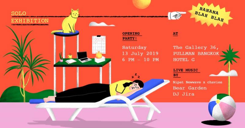 พบกับนิทรรศการ ‘It’s Okay to Take a Break’ นิทรรศการเดี่ยวครั้งแรกของ นฤมล ยิ้มฉวี หรือชื่อในนามศิลปิน Banana Blah Blah เจ้าของผลงานภาพวาดประกอบสีสัน ลวดลายเส้นอันเป็นเอกลักษณ์ ครั้งนี้เธอจะมาจัดแสดงงานที่สะท้อนถึงตัวตนของเธอในการนำเสนอเรื่องราวเกี่ยวกับความสำคัญของแต่ละสิ่งในชีวิตของแต่ละคน ที่ทำให้เป็นแรงขับเคลื่อนให้เขาเหล่านั้นดำเนินชีวิตต่อไป ทว่าหลายคนอาจมองข้ามถึงการพักเบรคว่านั่นก็ล้วนสำคัญ หากเราใช้เวลาให้ตัวเองบ้างแม้จะเป็นแค่ช่วงเวลาสั้น ๆ พร้อมด้วยศิลปินที่จะมาร่วมเล่นดนตรีเปิดนิทรรศการอย่าง Nipat Newwave, Bear Garden และ DJ Jira
