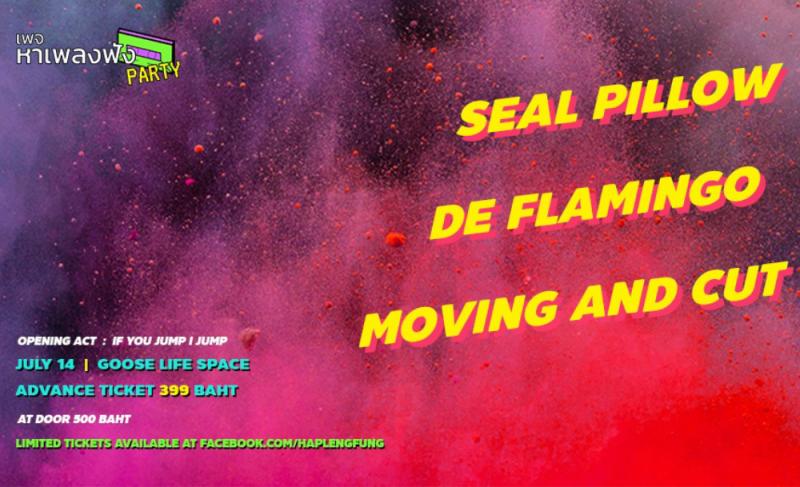 "เราเชื่อว่าทุกแนวเพลงล้วนมีเสน่ห์ในตัวเอง" เพจหาเพลงฟัง จึงอยากชวนทุกคนให้มาสนุกในงานปาร์ตี้ครั้งแรกของพวกเขา กับ 3 วงดนตรี 3 แนวเพลง ที่มีเอกลักษณ์โดดเด่น และจะพาให้ทุกคนหลงเสน่ห์ไปกับเสียงเพลงของพวกเขา ได้แก่ Seal Pillow, De Flamingo, Moving and Cut งานนี้จำกัดอายุนะ 20 ปีขึ้นไปเท่านั้นจ้า