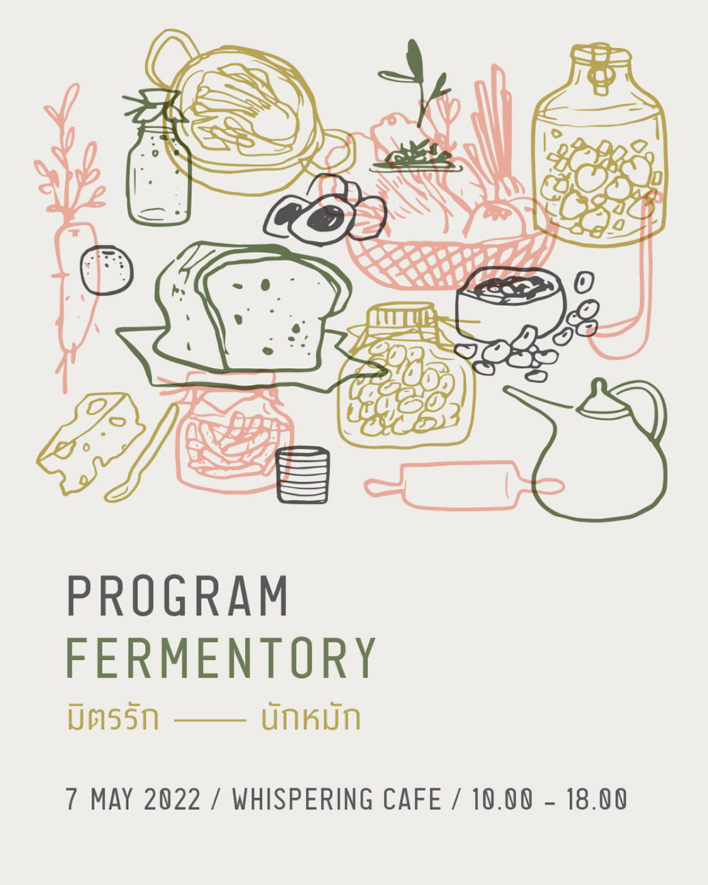 นอกจากจะได้แบ่งกันชิม แบ่งกันใช้ ของหมักดองที่จะจะนำมาจัดกันในงานนี้ ยังมีกิจกรรมแลกเปลี่ยนความรู้และเวิร์กชอปของหมักของใจให้เข้าร่วมกันอีกมากมาย เช่น Talk Kombucha ที่ชวนนักหมักตัวจริงอย่าง ก้อง ทรงกลด บางยี่ขัน จาก The Cloud, คุณ SHO OGA จาก SUSTAINA, เชฟ โน้ต อธิป สโมสร จากร้าน Shambala Grocery ที่จะมาเล่าประสบการณ์การหมักชาคอมบูชะ หรือเวิร์กชอปทำ 'เทมเป' อาหารหมักจากถั่วเมล็ดแห้งที่อุดมด้วยโปรตีนแสนอร่อย กับ ท้อ จุฑามาส บูรณะเจตน์ จาก Seriously Hobby และนักออกแบบกลุ่ม o-d-a
