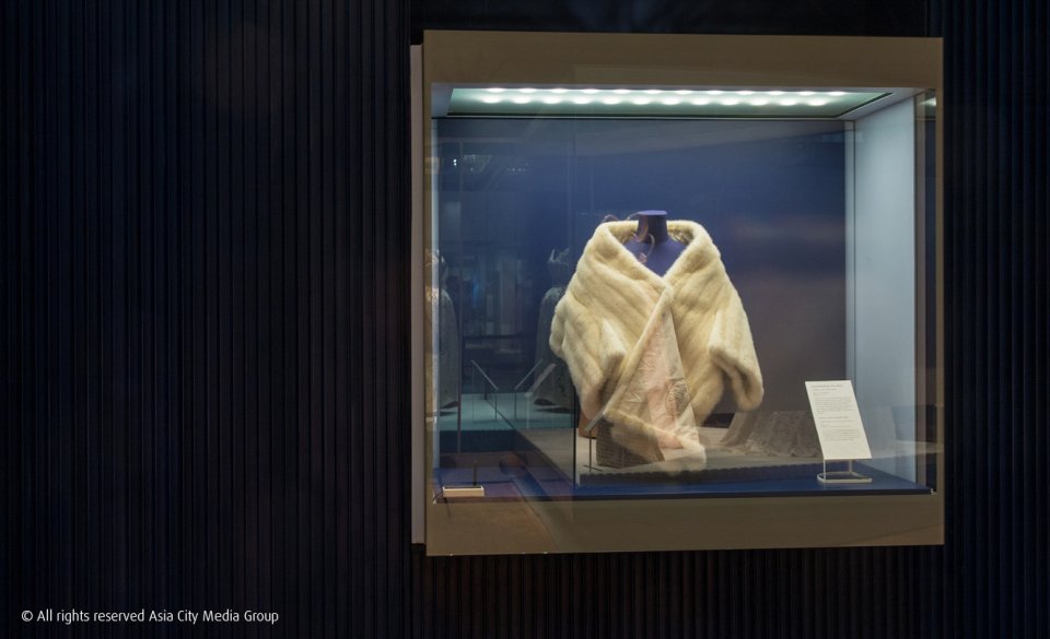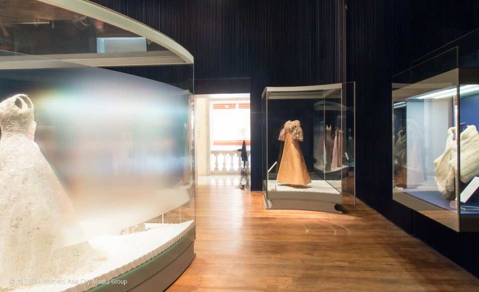 จากนั้นเราจะเข้าสู่ห้องแสดงฉลองพระองค์ชุดกลางคืน มีการตกแต่งผนังห้องให้เป็นสีน้ำเงิน-ดำเพื่อเสริมบรรยากาศให้สมจริง ในห้องนี้มีฉลองพระองค์ชุดราตรีทั้งหมด 8 ชุด ซึ่งออกแบบและตัดเย็บโดยบัลแมงด้วยการผสมสานความงามแบบตะวันออกกับแฟชันชั้นสูงแบบตะวันตกไว้ด้วยกัน