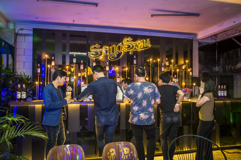 บาร์นี้มาในธีม "ป่าลับแลหลากสีกลางเมืองกรุง" ที่ตกเย็นแล้วป่าของ SangSom จะถูกไฟนีออนย้อมสีเขียวสีน้ำเงินดูแปลกตา และน่าค้นหาเป็นที่สุด จะมีสักกี่ครั้งที่เราจะเห็นการตกแต่งบาร์ตามงานอีเวนต์เป็นป่าลับแลขนาดนี้ แค่นี้ก็หลอกล่อให้เราแหวกพงไม้เข้าไปดูข้างในแล้วว่ามีอะไรซ่อนอยู่กันแน่