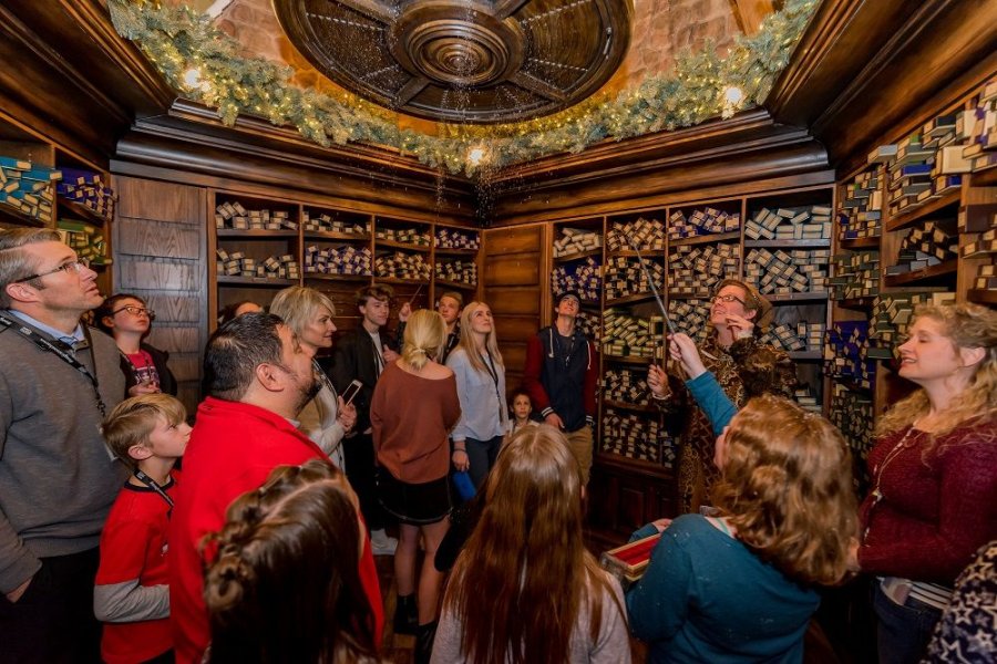 ร้านค้าสุดพิเศษนี้อัดแน่นไปด้วยสินค้าจาก Harry Potter มากมายแบบที่ต้องถอนเงินถอนทองมาให้หมดทั้งกริงกอตส์ เช่น เสื้อคลุมของนักเรียนฮอกวอตส์ เครื่องแต่งกายที่ถูกออกแบบเฉพาะสำหรับช่วงเทศกาล ลูกอมเม็ดทุกรสของเบอร์ตี้บอตต์ ไปจนถึงไม้กายสิทธิ์