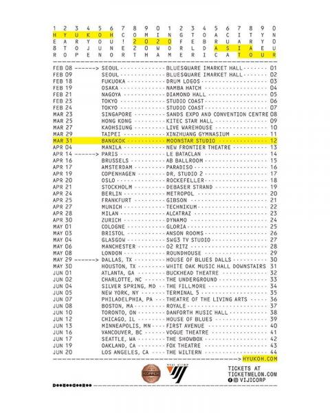 HYUKOH 2020 WORLD TOUR in Bangkok จะจัดขึ้นในวันที่ 31 มี.ค. ณ Moonstar Studio โกดังย่านลาดพร้าว ที่ถูกเปลี่ยนฟังก์ชันมาจัดคอนเสิร์ต ซึ่งตอนนี้ก็เปิดให้จองบัตรกันแล้วผ่านทางเว็บไซต์ www.ticketmelon.com โดยจะขายบัตรในราคาเดียว 2,300 บาท สำหรับวงดนตรีคุณภาพกับบัตรคอนราคานี้ เราบอกเลยว่าไม่แพง ใครพลาดคอนเสิร์ตครั้งที่แล้ว รอบนี้ต้องแก้ตัวแล้วนะ เพราะถ้าขึ้น Sold Out ขึ้นมาจะมาเสียใจทีหลังไม่ได้นะเอ้อ!