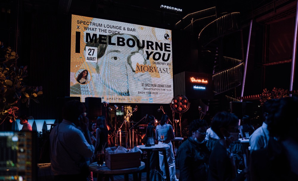 อาทิตย์ที่แล้ว พี่มอร์เขาเพิ่งชวนเราไต่ความสูงของตึกโรงแรม Hyatt Regency Bangkok Sukhumvit ขึ้นไปตะโกน I Melbourne You ดัง ๆ ที่ชั้นดาดฟ้า Spectrum Lounge & Bar ในงานปาร์ตี้ I Melbourne You Exclusive Party with Morvasu ซึ่งเป็นที่แรกที่พี่มอร์ร้องสด เล่นสด เพลงสุดฮิตสุดชิลล์นี้ ซึ่งบรรยากาศในงานก็เต็มไปด้วยความอบอุ่นใกล้ชิด เหมือนพี่มอร์เขายกชายหาดมาไว้ให้เรานั่งจุ่มขา ฟังเสียงคลื่น ล่องลอยไปยังที่ที่มีแต่เธอ และมีแค่รัก และมีแค่เรา