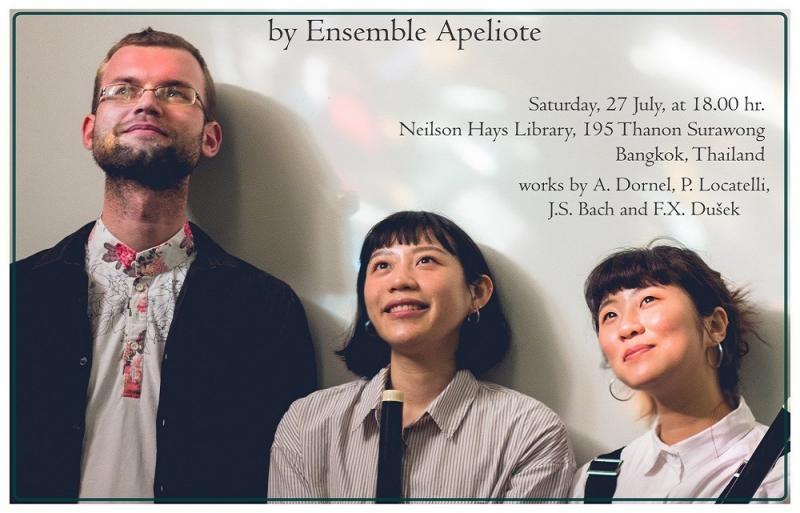 และในปลายเดือนนี้ หอสมุดเก่าแก่สไตล์ Neo-Classic ที่ก่อตั้งมาตั้งแต่สมัยรัชกาลที่ 5 Neilson Hays Library กำลังจะจัดคอนเสิร์ต Introduction to Baroque ในพื้นที่ของหอสมุด ดนตรีในยุค Baroque จะถูกบรรเลงโดยเหล่านักดนตรี Baroque Ensemble Apeliote นักดนตรีที่มากประสบการณ์จากเมือง Utrecht ประเทศ Netherlands พวกเขาจะมาเปลี่ยนบรรยากาศในหอสมุดกลางเมืองกรุง ให้เต็มไปด้วยกลิ่นอายแห่งดนตรีคลาสสิคโบราณ
